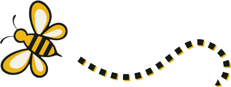 Optional — decorative branded illustration (cartoon bee holding art supplies).